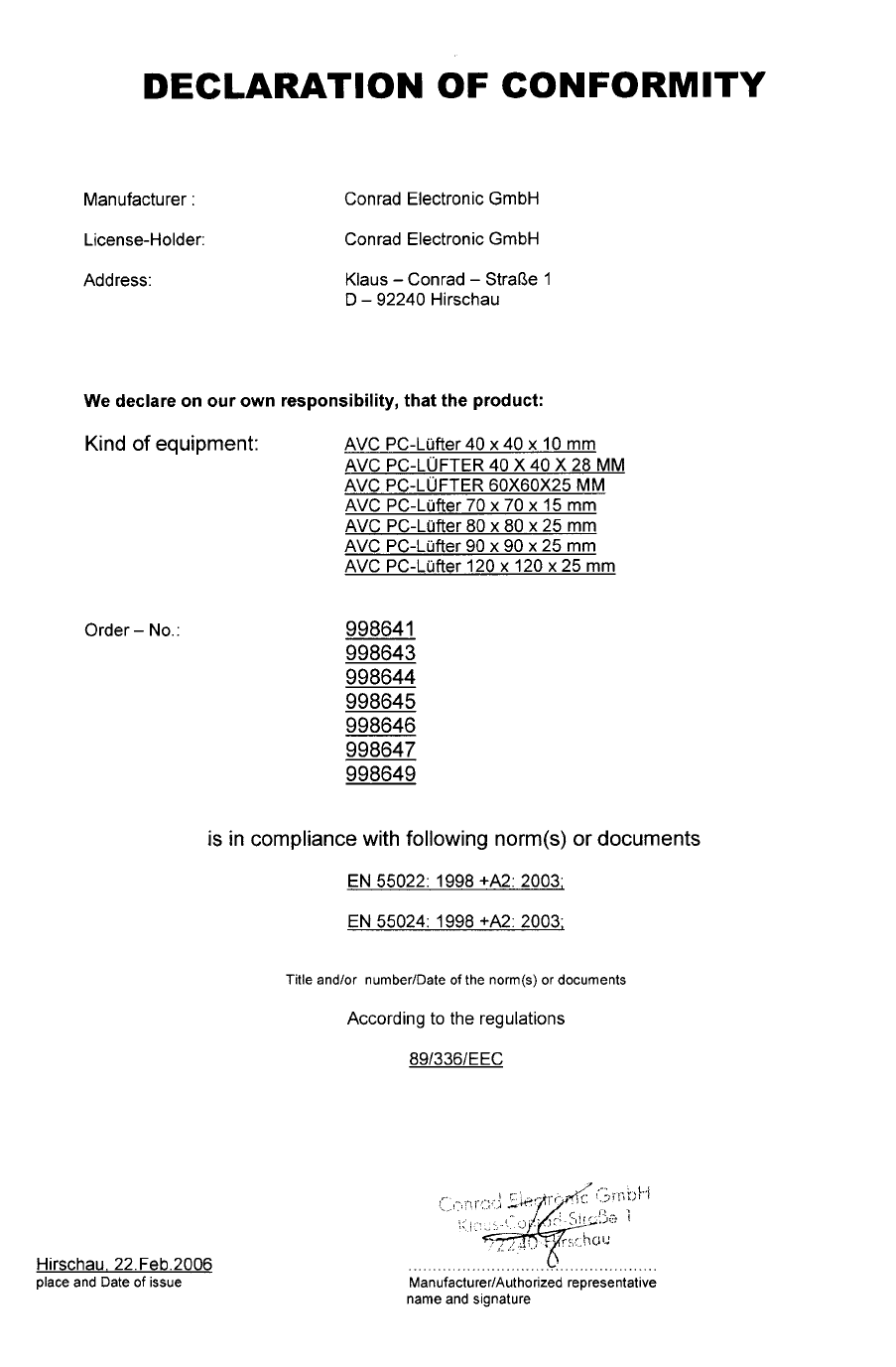 Declaration of conformity