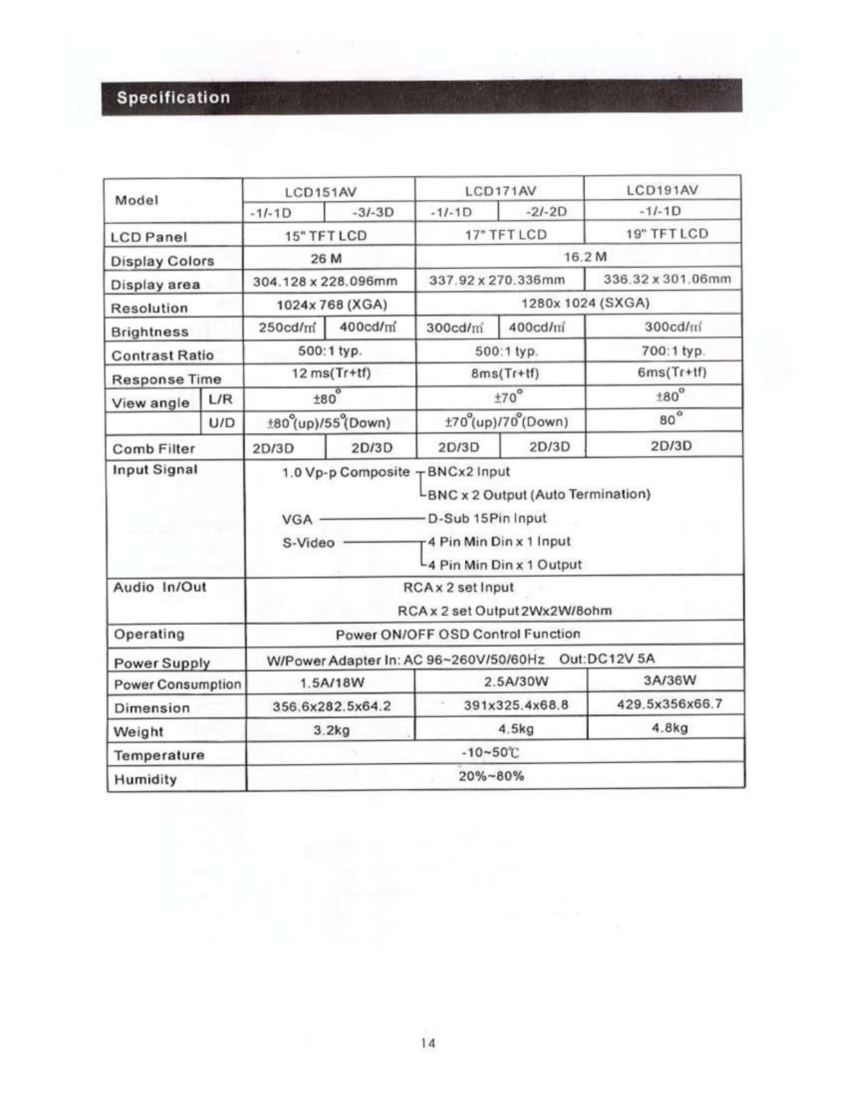 TFT LCD Monitor LCD171AV-1/-2