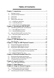 Table of Contents Chapter 1 Introduction .......................................................................1 1.1 Package Content........................................................................................ 1 1.2 Features and Specifications ....................................................................... 1 1.3 Front Panel ................................................................................................ 2 1.4 Back Panel.....................................................