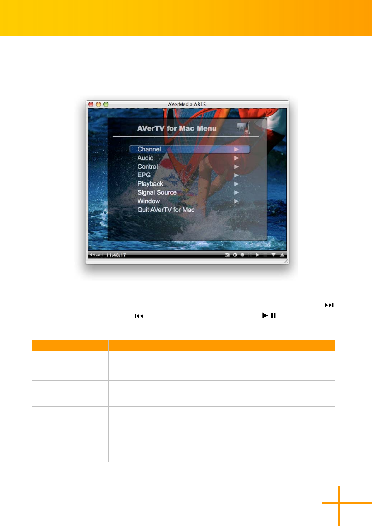 AVerTV offers you an alternative operating method, press MENU button on the Apple