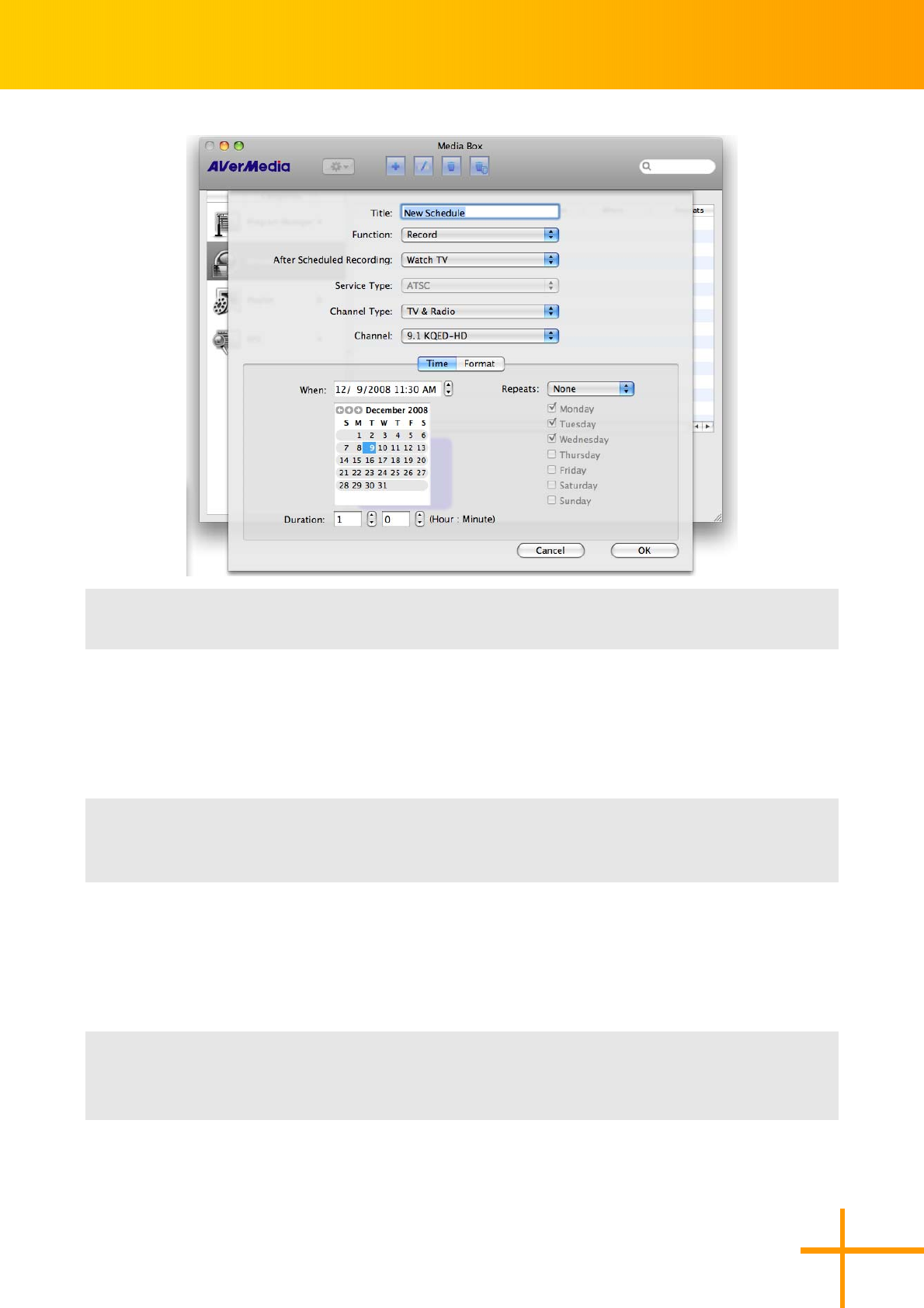 Set the schedule to tune in live TV or to perform recording. You can set the schedule