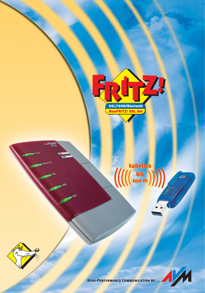 Das ist BlueFRITZ! DSL Set 1 Das ist BlueFRITZ! DSL Set Herzlich Willkommen bei BlueFRITZ! DSL Set. Dieses Handbuch ist Ihr Einstieg in die kabellose DSL- und ISDN-Kommunikation über Bluetooth. Die Dokumentation enthält Informationen zu Funktionsumfang, Installation und über den Zugang zum Internet mit BlueFRITZ! DSL Set. 1.