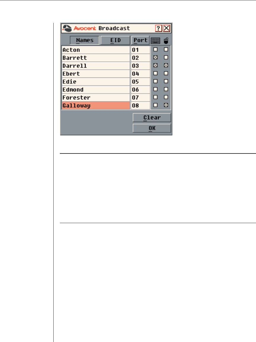 1. From the Broadcast dialog box, select the mouse and/or keyboard