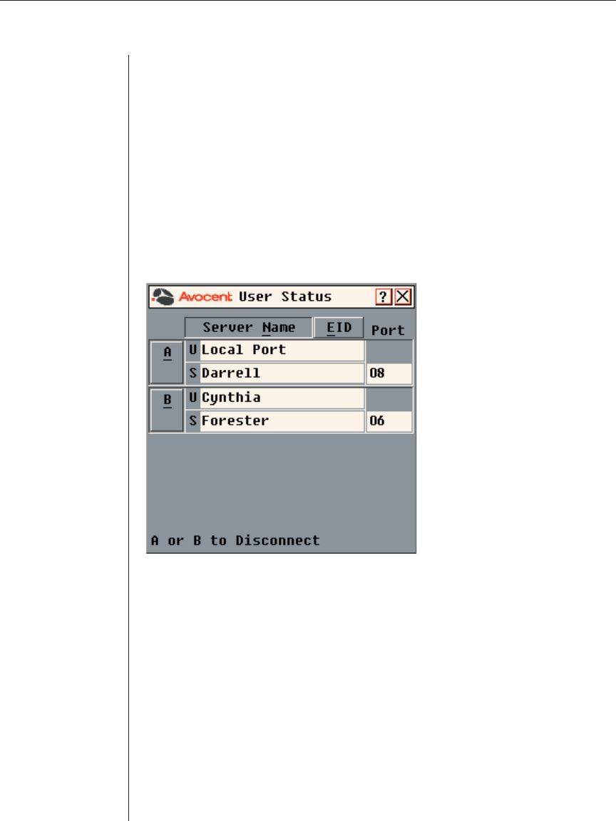server name or EID number to which a user is connected. If there is no user