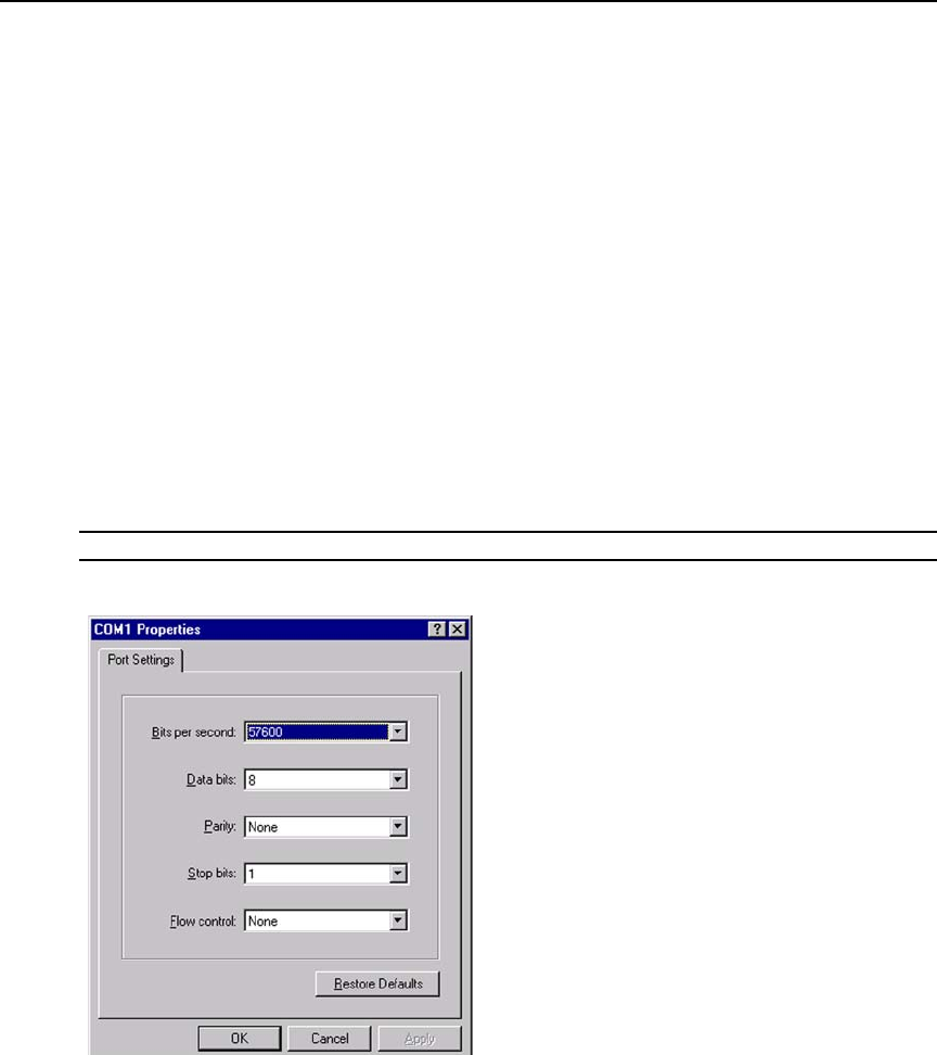4. Configure the HyperTerminal session for 57600 bits per second, 8 data bits, no parity, 1 stop