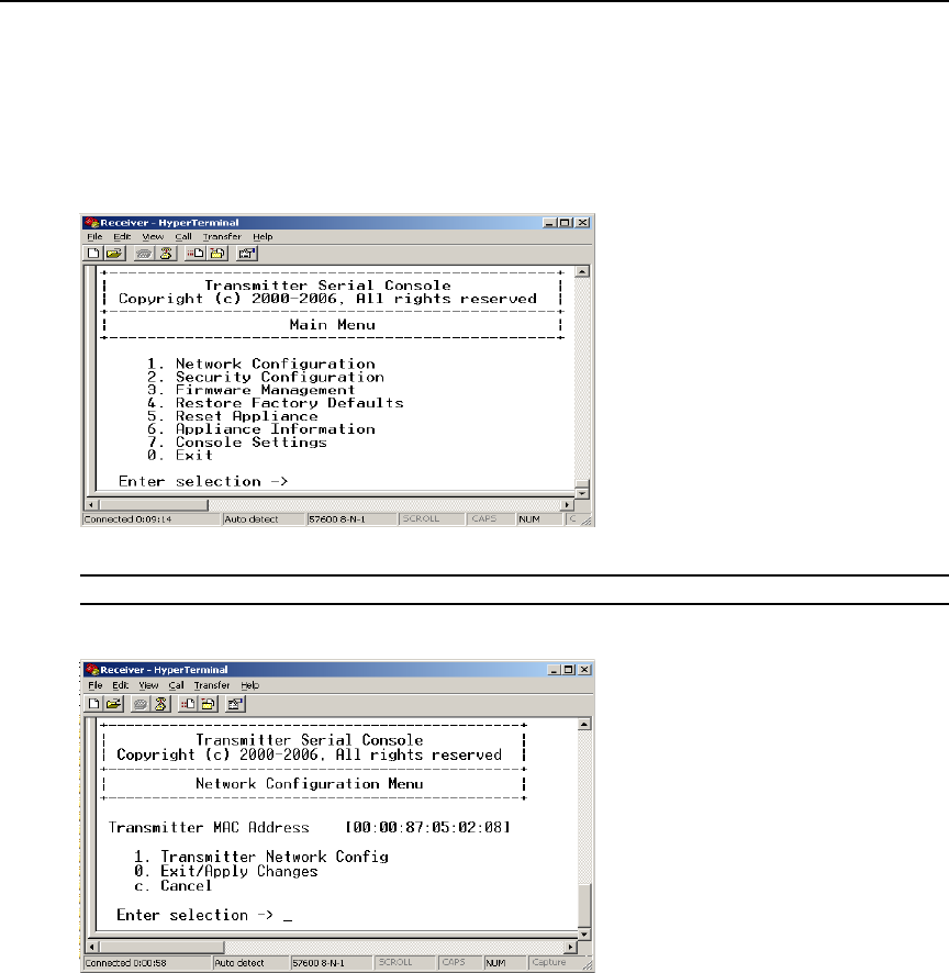 option in the Transmitter Main Menu applies only to network settings.