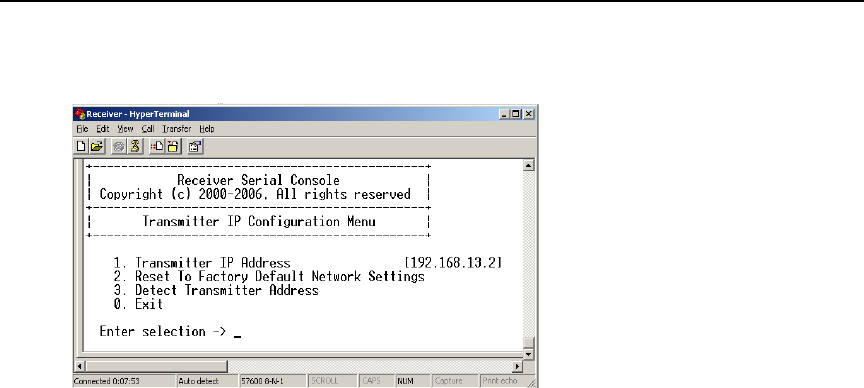 20. Choose Transmitter IP Address. Type the new IP address for the Transmitter. Press Enter to