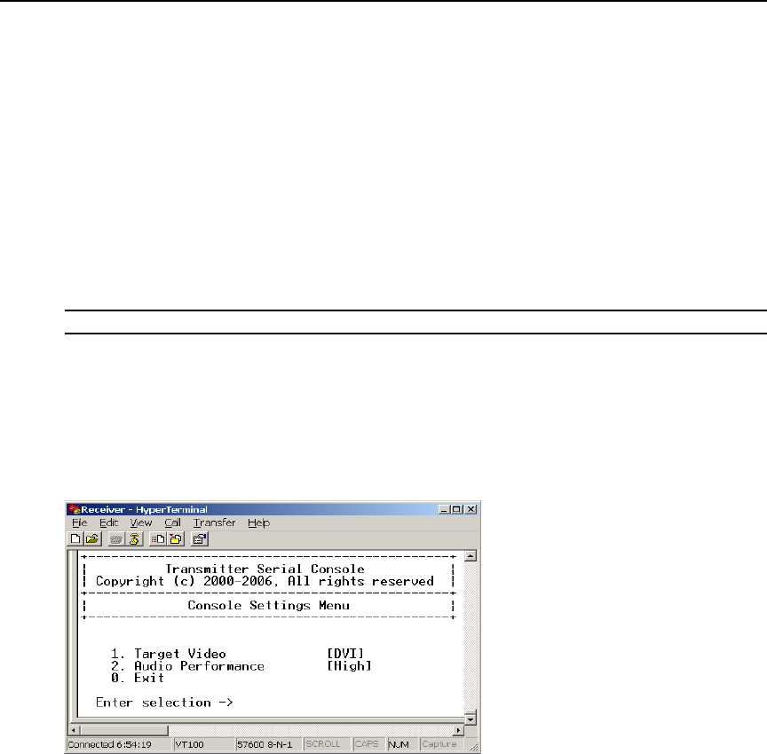 1. Activate the serial menu as described in Accessing the serial menu on page 14.