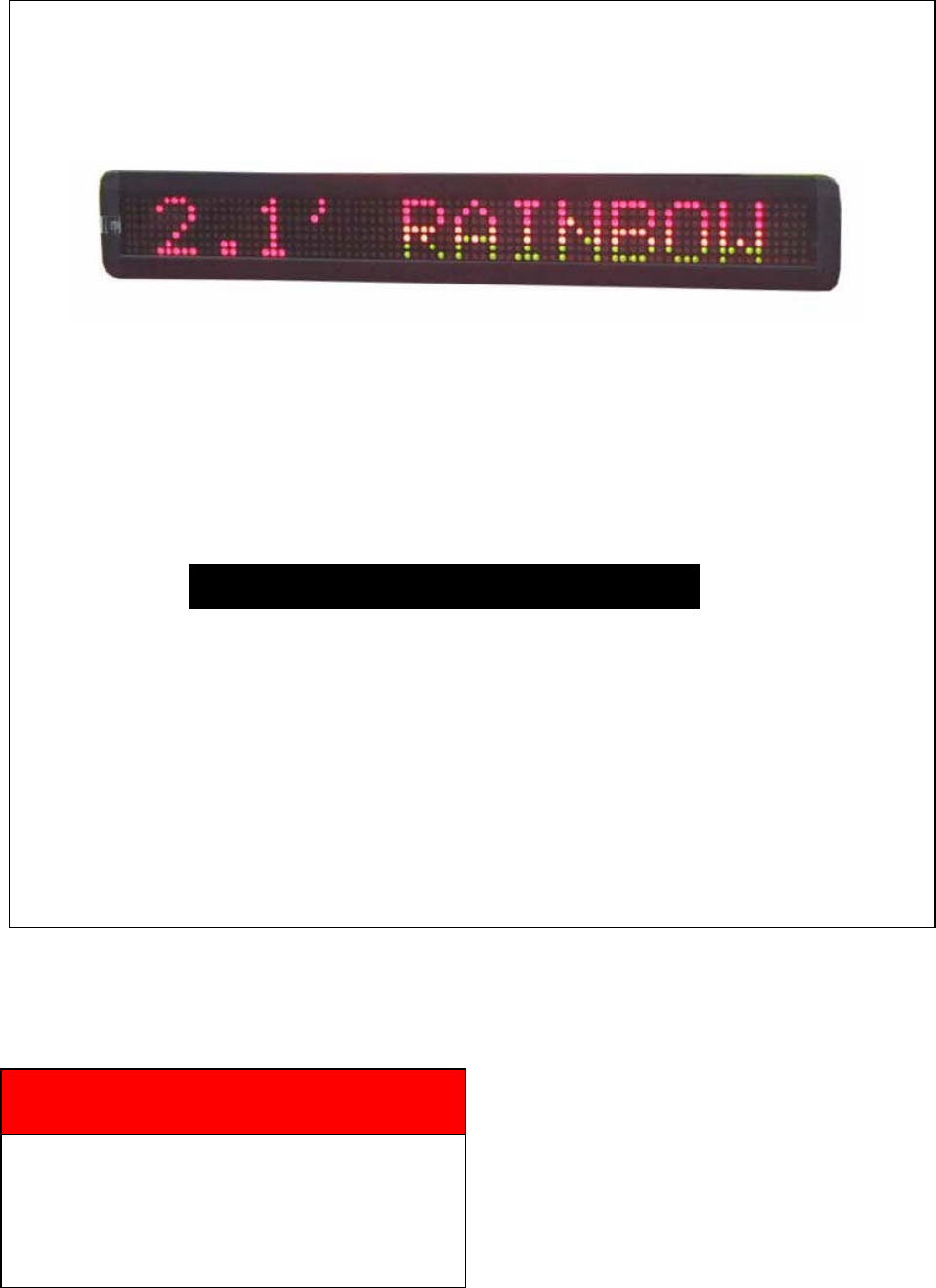 P ramming Manual Programming Manual Speed 1(Fastest) Speed 2 SPEED Speed 3 Change the scrolling Speed 4 speed of the display Speed 5 Speed 6 Speed 7 Speed 8(Slowest) City Car Non- editable by user Vessel Tel Nature Ship Swim Cat MERRY X’MAS HAPPY NEW YEAR PHRASE 4 TH JULY Generate an animated HAPPY EASTER pre-programmed HAPPY HALLOWEEN display DON’T DRINK & DRIVE NO SMOKING WELCOME Pauses for 2second delay Pauses for 3second delay Pauses for 4second delay PAUSE [SPEED 4] [SPEED 5] [SPEED 6] [SPE