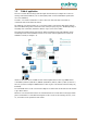1.3. Field of application The EoC 1-01 modem allows feeding in of IP data signals from the Internet, for example via a router in an existing coaxial antenna distributor, such as SAT-IF-, DVB-T, CATV- or head end distribution systems (in the star or tree distribution). Several Eoc 1-01 modems communicates in a Peer-to-Peer mode. This means that each modem can communicate with each modem in the network. The advantage of an ethernet solution over a coax solution is that no new network cables must be laid.