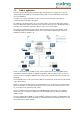 1.3. Field of application The EoC 2-01 modem allows feeding in of IP data signals from the Internet, for example via a router in an existing coaxial antenna distributor, such as SAT-IF-, DVB-T, CATV- or head end distribution systems (in the star or tree distribution). Several Eoc 2-01 modems communicates in a Peer-to-Peer mode. This means that each modem can communicate with each modem in the network. The advantage of an ethernet solution over a coax solution is that no new network cables must be laid.