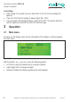 Operation Instructions SZU 21-00 Chapter 3: Operation Low Voltage If the voltage of any power source is lower than 13.3V, the red low voltage LED lights up Take care, that the input voltage is always higher than 13.3V. If you are using rechargeable batteries, switch off (to “EXT”) the device when the red LED lights up to prevent the cells from total discharge. 3 Operation 3.1 Main menu At power on, the display shows version information of the software, and then appears the main menu. Fig.