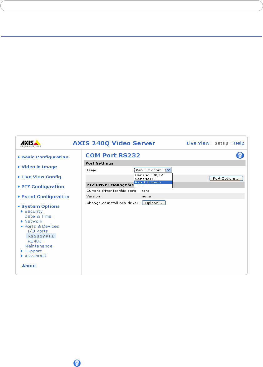6. From System Options > Ports & Devices, select the port configured for PTZ and