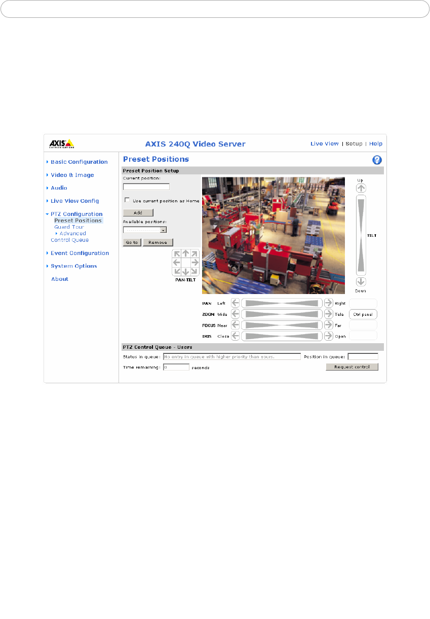 Once PTZ has been installed for the AXIS 240Q, PTZ Configuration now appears in the