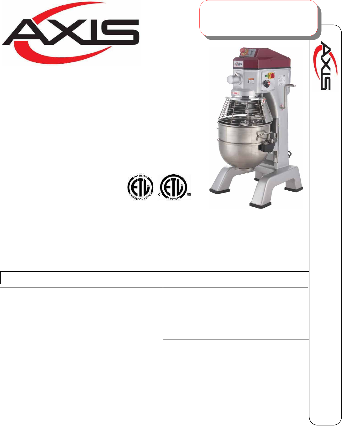 The Axis Model AX-M40 is an advanced design, highly reliable professional food processing tool,