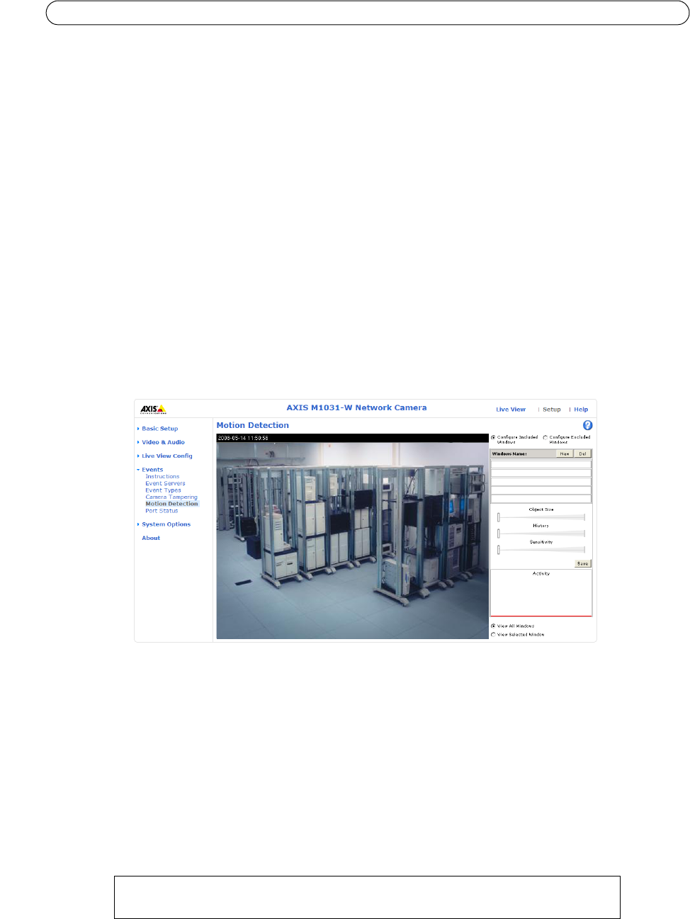 The AXIS M10 Series can detect moving objects in its field of vision using video motion detection. The AXIS M1031-W and