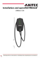 Installationsanleitung AXIbox 11K The charging cable must not be kinked, pinched, run over or otherwise damaged. Keep children away from the charging station. The car must not be driven during charging. 3 Description oft he product 3.1 Function and intended use The AXIbox 11K is used for charging electric cars. There is a choice of two modes, which can be set during installation: In Plug & Play mode, no authentication by the user is necessary.