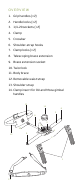 OVERVIE W 1. Grip handles (×2) 2. Handle locks (×2) 3. 1/4-20 sockets (×2) 4. Clamp 5. Crossbar 6. Shoulder-strap hooks 7. Clamp locks (×2) 8. Telescoping brace extension 9. Brace extension socket 10. Twist lock 11. Body brace 12. Removable waist strap 13. Shoulder strap 14.