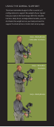 U S IN G T HE GIMB A L S UP P O R T The Universal Gimbal Support offers a variety of configurations to support the weight of your rig and help you capture the best image. With the shoulder harness, body brace, and adjustable handles, you can distribute the weight across your body and use the support to shoot action or static shots at any angle.