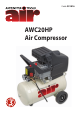 Index of Contents Page Index of Contents Declaration of Conformity What’s Included Safety Precautions Specifications (AWC20HP Air Compressor) Assembly Instructions Illustration and Parts Description of Air Compressor Operating Instruction Maintenance Parts Breakdown Parts List Trouble Shooting 02 02 03 03 04 04-05 05-06-07 08 09 10 11 12 Declaration of Conformity manufactured by Qingdao D&D Electromechanical Technologies Co., Ltd.