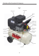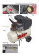 Illustration and Parts Description of Air Compressor Fig 1 Air inlet filter Motor cover Cylinder Handle On/Off switch Pressure switch 1/4” BSP male coupling Outlet pressure gauge Handle Crankcase Tank pressure gauge Oil drain plug Pressure relief valve Wheel Check valve Front foot 06 Tank