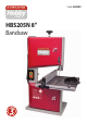What’s Included Quantity Item Part 1 No 1 No HBS205N 8" Bandsaw Bandsaw Blade 1,400mm Long 6” TPI (Mounted on the saw but not tensioned) Table Fence Rail with Scale Fence Assembly Mitre Fence Push Stick 1 No 1 No 1 No 1 No 1 No A Model Number RBS205 (Code: 508203) B C D E F Bag Containing: G H I J K L M 4 No M6 x 12mm Bolts 4 No M6 Shakeproof Washers 4 No M8x12mm Bolts 4 No M8 Washers 1 No Angled Bolt and Nut 1 No 3mm Hex Key 1 No 10-13mm Spanner 1 No Instruction Manual Having unpacked your s