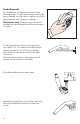 Scale Removal This handshower incorporates the Quick Clean cleaning system. If scale deposits are noticed in the spray channels, turn the water on lightly and rub the spray channels with a finger or a sponge. Clubmaster only: When the spray modes are changed, pins push deposits from the normal spray channels. If scale deposits are noticed on the spray face, pour about 3/4” of a commercial scale remover, such as Lime-Away™ or CLR™,into a shallow dish. Dilute the remover according to the label instructions.