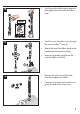 13 14 15 8 • Feed the inner hose through the handshower holder (1), liner (2), and end cap (3). • Screw the end cap (4) over the end of the handshower holder. • Continue pulling "out" on the inner hose (5). • Place the handshower holder retainer ring (1) over the hose and the handshower holder. • Install the screen washer and the handshower on the hose (2). • Use a knife to cut the o-rings at the end of the outer hose. • Feed the hoses back through the handshower mount.