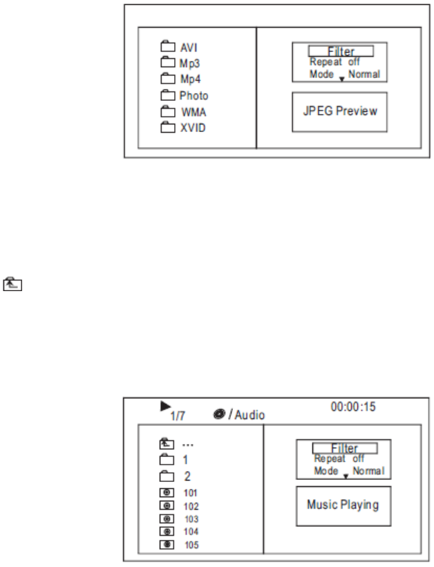 The MP3/WMA/MPEG4 disc has such a directory structure as shown in the .