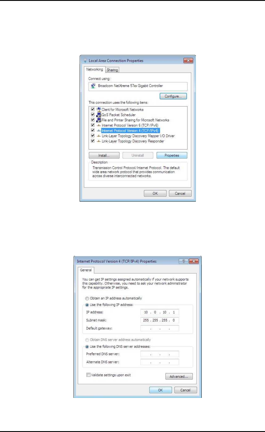 6. Select “Use the following IP address:” and key in 10.0.10.1 as the IP