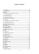 Table of Contents 1. Security .....................................................................................4 2. Getting Started .............................................................................8 2.1Batteries ................................................................................................. 8 2.1.1 Installing and uninstalling the battery ..............................................8 2.1.2 Charging the battery ............................................................