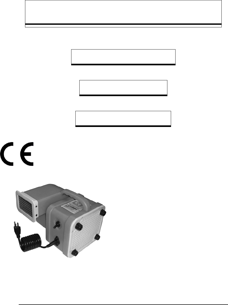 MODEL: CP-1 VOLTAGE MAX AIR VOLUME 115 V 375 CFM 230 V 345 CFM AMPS 2.3 A 1.3 A MAX STATIC PRESSURE WEIGHT NET/ GR 2.8 INCH 11/12 LBS 2.6 INCH 11/12 LBS UNIT SIZE (LxWxH) WHEEL SPEED (RPM) 10.5 x 10 x 8.5 INCH 10.5 x 10 x 8.