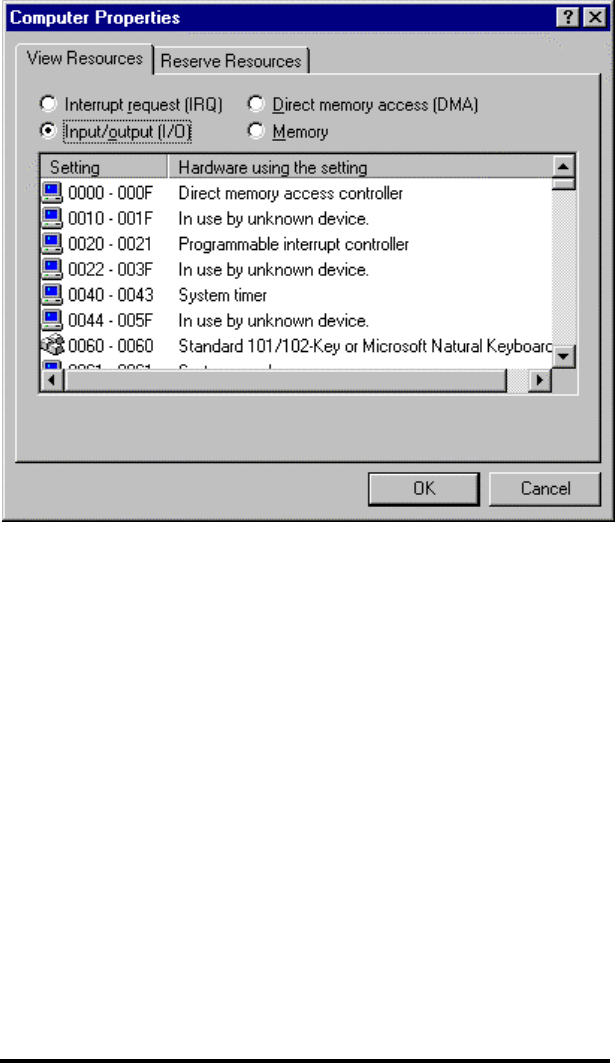 Scroll through the list, check 03F8H, 02F8H, 03E8H, 02E8H. If