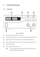 3 Controls and Indicators 3.1 Front Panel Figure 1 - Front Panel (1) LED panel meter display with CV/CC indicator (2) Rear Control Indicator (lights up when using Preset/Remote Control/Set mode) (3) Output Voltage Control Knob (control main and auxiliary output voltage) (4) Output Current Control Knob (control main and auxiliary output current limit) (5) Power ON/OFF Switch (6) Auxiliary Output Terminal (max 5 A) Note: Please see Section 4.1.