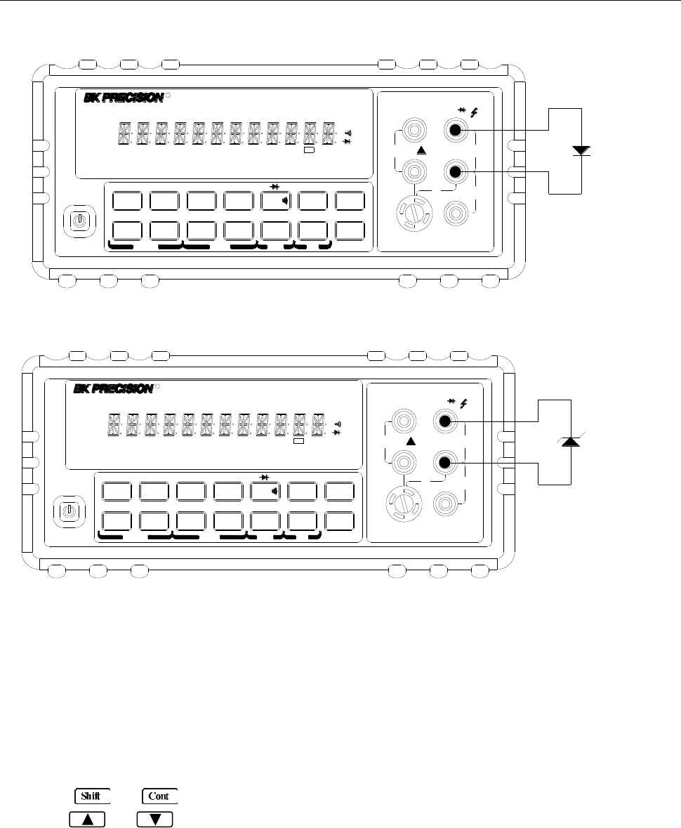 The diode test function measures voltage on the 3V range for the 1 mA test current and the 10 V range