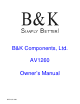 LIMITED WARRANTY B & K Components Ltd., referred to herein as B & K, warrants your B & K equipment against all defects in material and workmanship for a period of five years from the date of purchase. This warranty applies only to the original purchaser and only to equipment in normal residential use and service.