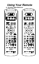 Using Your Remote This remote control uses four (4) AAA 1.5V batteries. Please be sure to match the batteries with the (+) and (-) markings inside the battery compartment during the installation. A. Open and Close the Battery Compartment Cover 1. To open the battery cover, push the latch forward toward the top of the remote control, and lift the latch up. 2. To close the battery cover, slide the battery cover straight in (towards the top of the remote) and push down until it “clicks” into place. B.