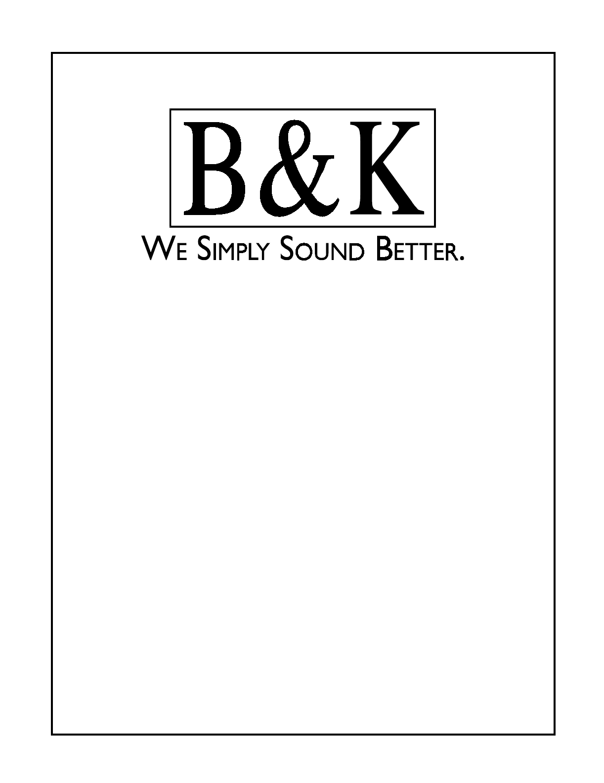 Limited Warranty B&K Components Ltd., referred to herein as B&K, warrants your B&K equipment against all defects in material and workmanship for a period of five years from the date of purchase. This warranty applies only to the original purchaser and only to equipment in normal residential use and service.