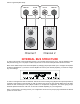 TROUBLESHOOTING PROBLEM POSSIBLE CAUSE POSSIBLE SOLUTION No sound (‘on’ LED not illuminated) 1. Power cord not plugged in. 2. Power off at AC source. 3. AC power inlet fuse blown or faulty 4. Control Input not activated. 1. Reconnect power cord. 2. Check AC switch or fuse 3. Check for shorts or overloading 4. Supply Control IN with a 5-24 Volt AC or DC supply (Page 7) No sound on some or all selected channels (‘on’ LED illuminated) 1. Speaker leads loose or faulty 2.