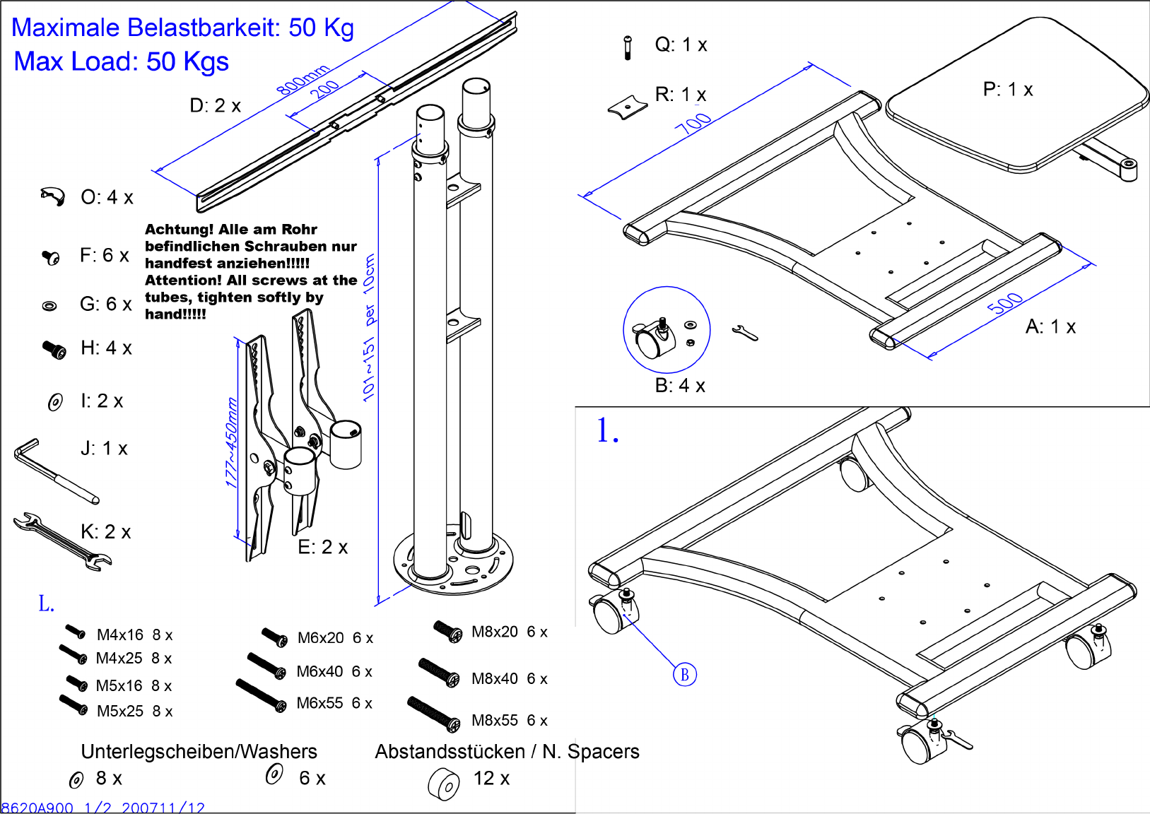 TV trolley 68,6 cm (27") - 152,4 cm (60") Rigid RW8620/S