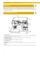 ——————————————————————————————————————————————————— Operation panel The operation panel, located on the front at the right of the sewing machine, consists of the LCD (liquid crystal display) and keys for specifying various sewing settings. 1 2 3 4 5 6 9 7 C 0 D 8 A E F H B G a LCD (liquid crystal display) Settings for the selected stitch and error messages for incorrect operations appear in the LCD. Use keys b and g through r, described below, to display various items and select the settings.