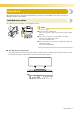 ———————————————————————————————————————————————————— Lightly hold down the bobbin with your right e hand, and then guide the thread as shown with your left hand. Reattach the bobbin cover. g Insert the tab in the lower-left corner of the bobbin cover, and then lightly press down on the right side. 2 1 X The lower threading is finished. CAUTION ● When installing the bobbin, be sure to hold it down with your finger. If the bobbin is not correctly installed, the thread tension will be incorrect.