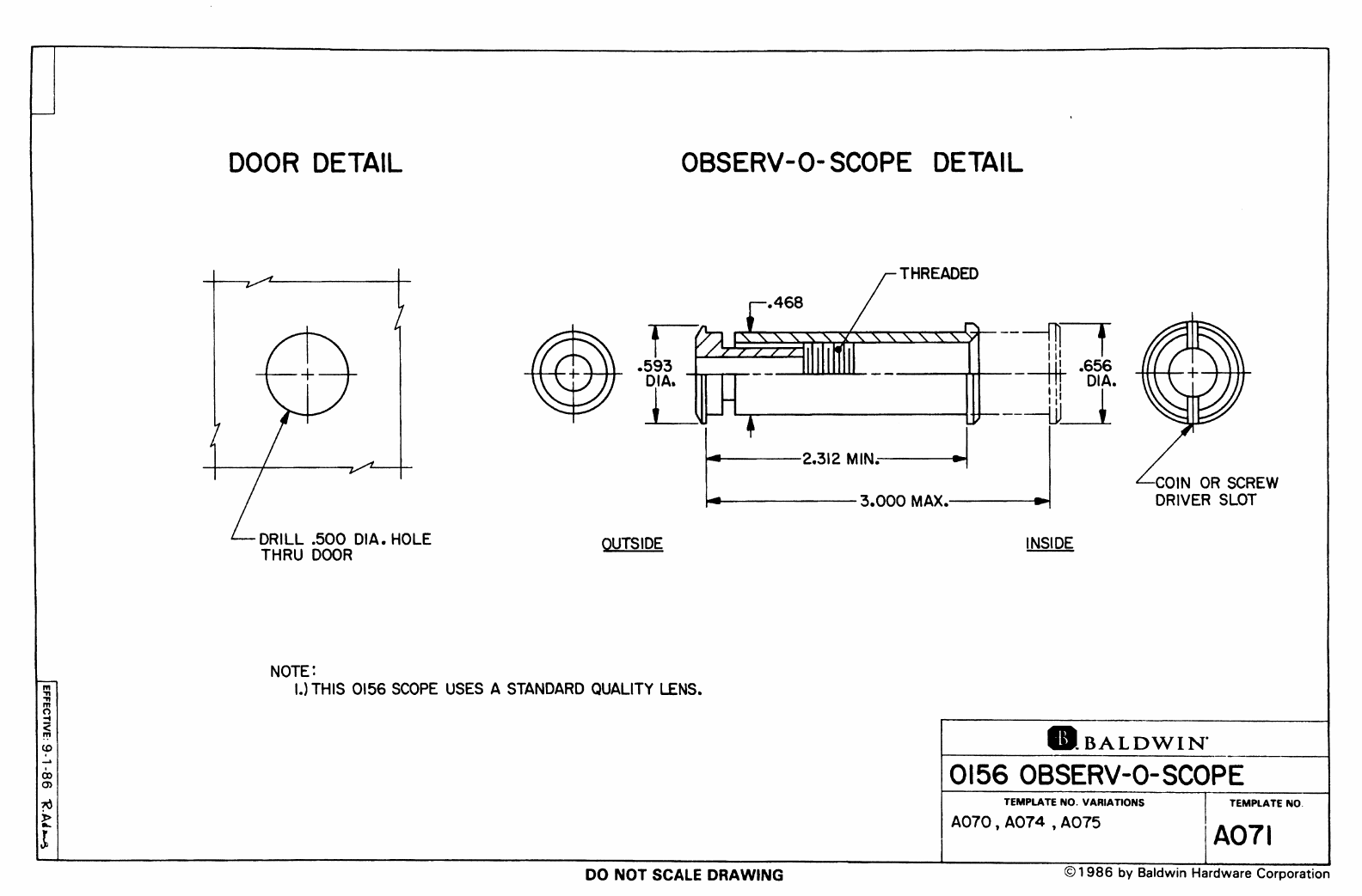 Baldwin Observ-O-Scope Door Viewer for 2.25 Inch to 3.25 Inch Thick Doors