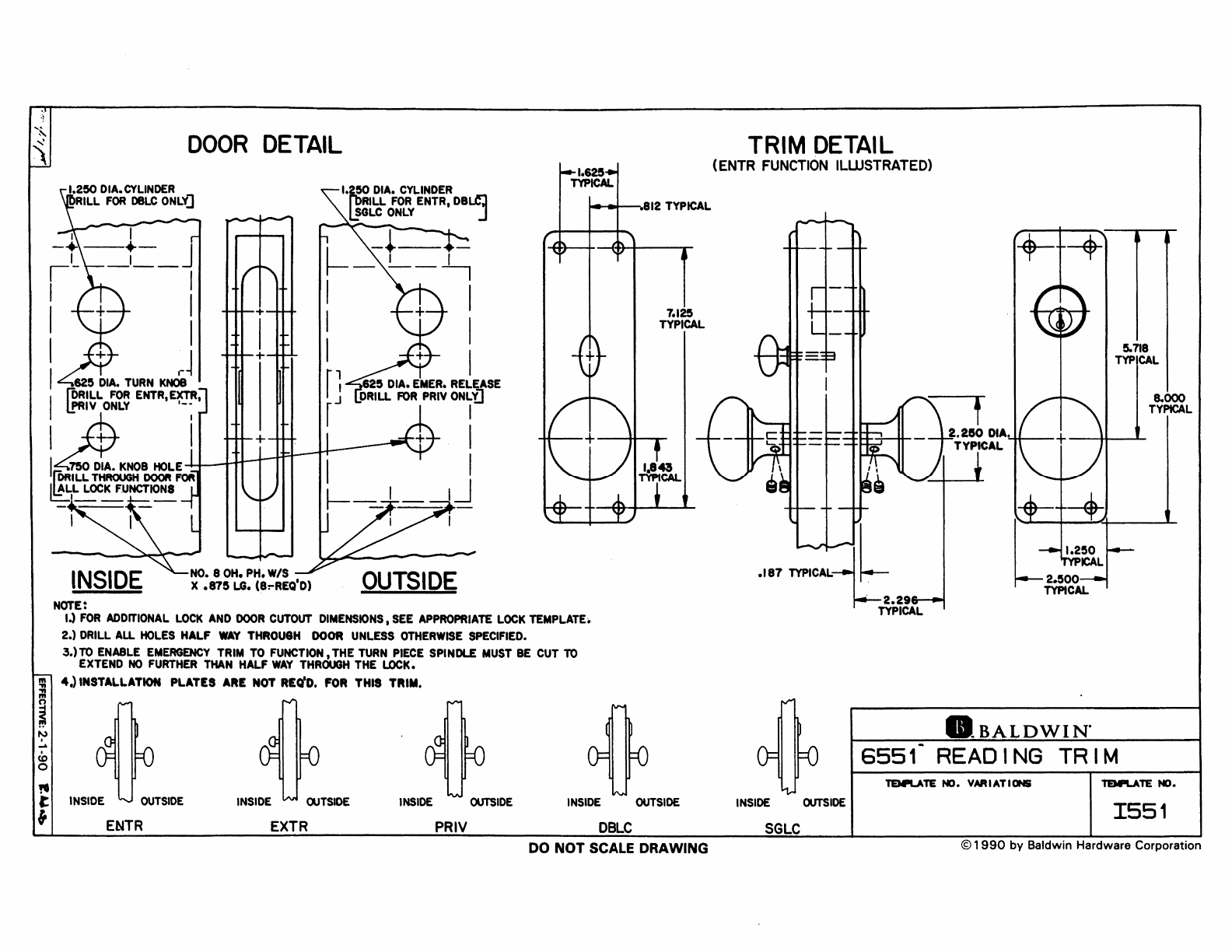 Baldwin Reading Single Cylinder Mortise Handleset Trim Set