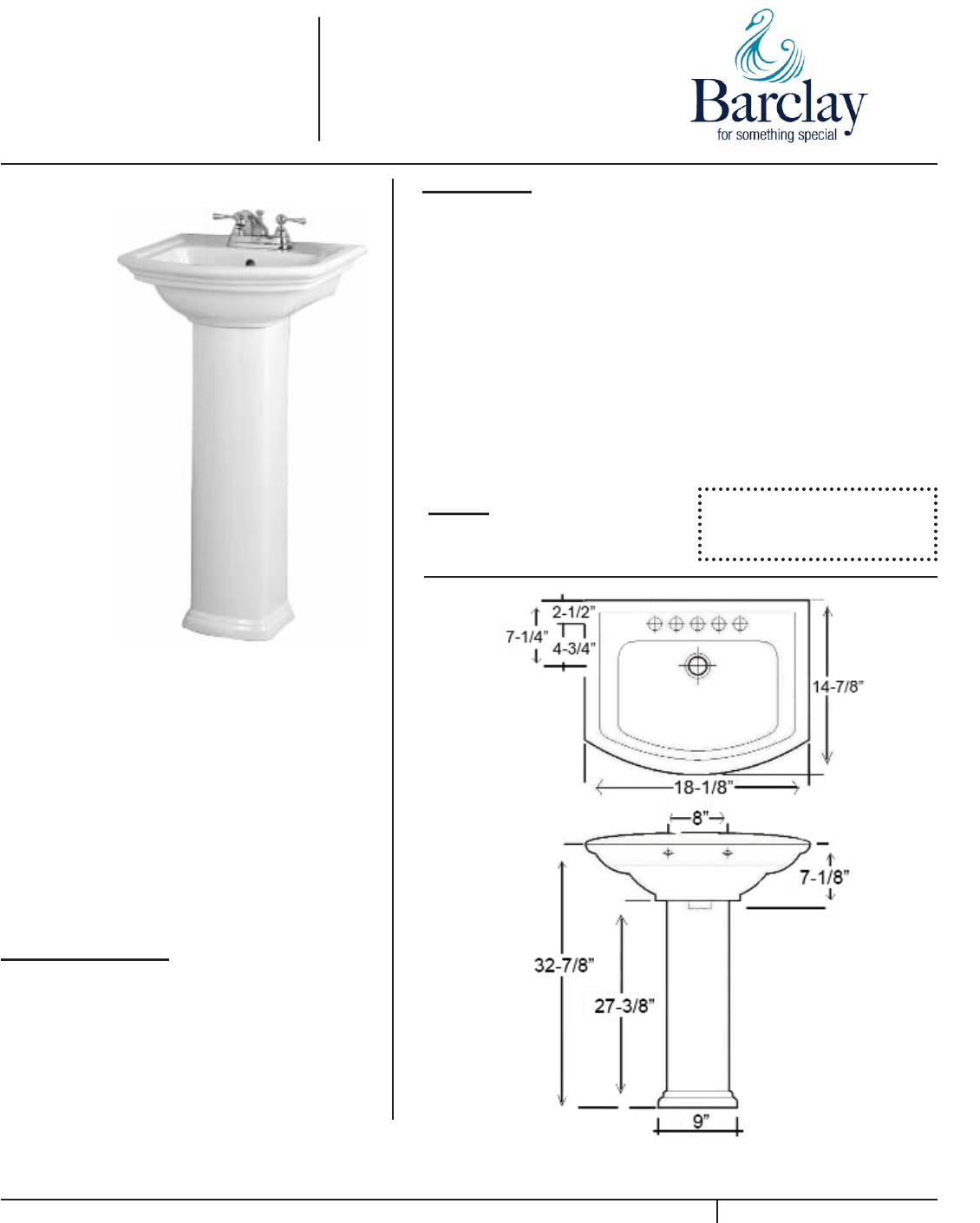Spec Sheet for Washington 460 Pedestal Lavatory