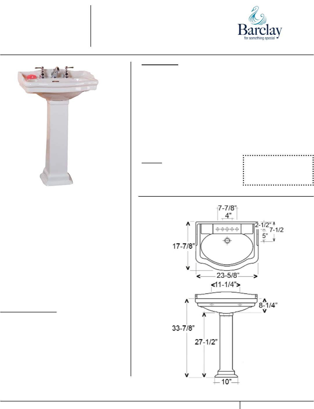 Spec Sheet for Stanford 600 Pedestal Lavatory
