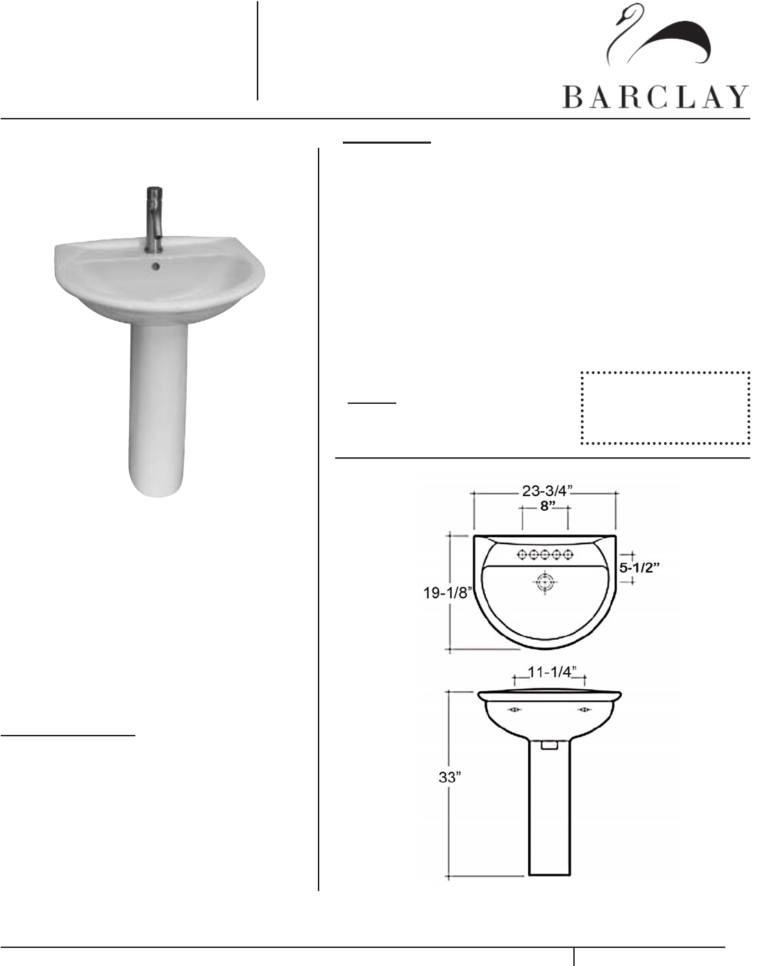 Dimensions of fixture are nominal and may vary within the range of tolerances established by ASME Standard A112.19.2-2008. Dimensions and