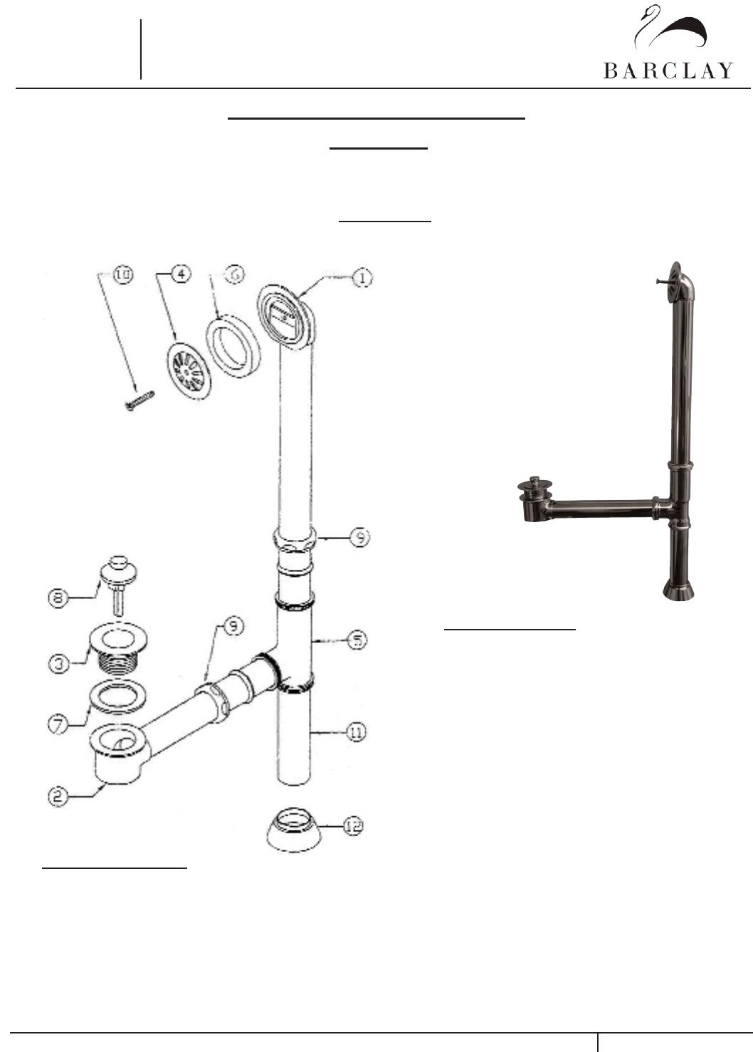 • Top Overflow Tube (1) • Bottom Shoe (2) • Top Waste Flange (3) • Face Plate (4) • Exposed Tee (5) •