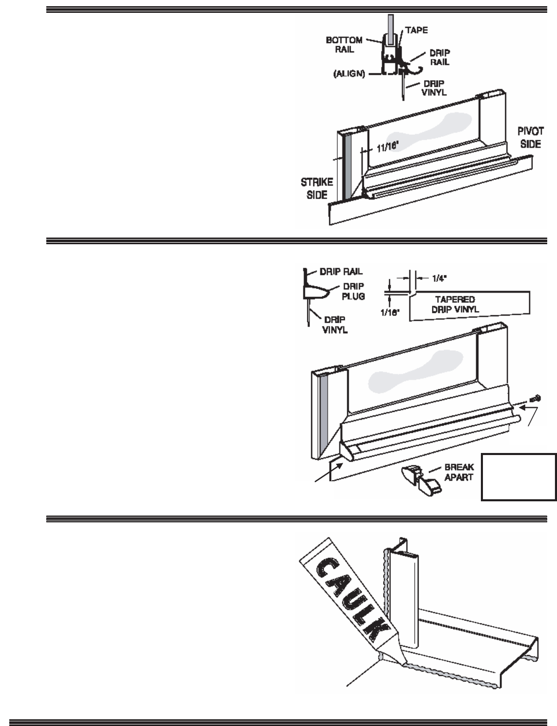 Position the drip rail flush with the bottom and pivot