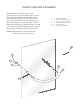 10 Locate the nylon bottom guide [S] in the middle of the tub track [A] with the glass panels in the position shown. With a 7/64” bit, drill two holes into the V-groove through the mounting holes in the guide. Install the bottom guide with two #6 x 3/8” pan head screws [T] thru the drilled holes as shown. GLAZED PANELS CENTER GUIDE TUB TRACK (2) #6 X 3/8 “ PAN HEAD SCREW INTERIOR 11 Slide the stainless steel bumper inserts [U] into the four soft vinyl jamb bumpers [V].